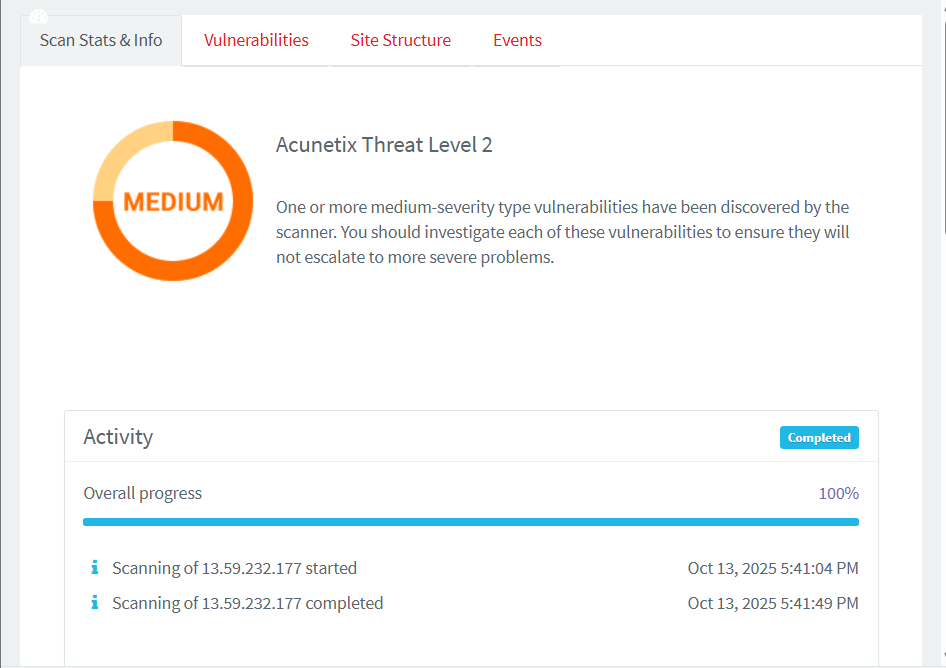 Full Scan으로 돌리니까 몇 가지 취약점이 발견된 것 같다.