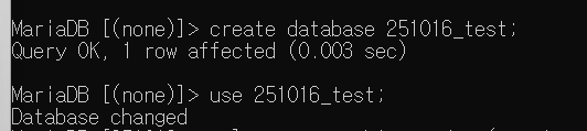 데이터베이스를 생성하고 선택한다.