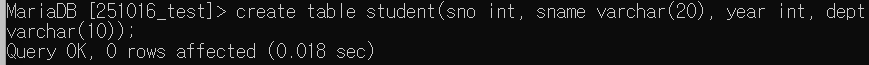 student 테이블을 생성했다.