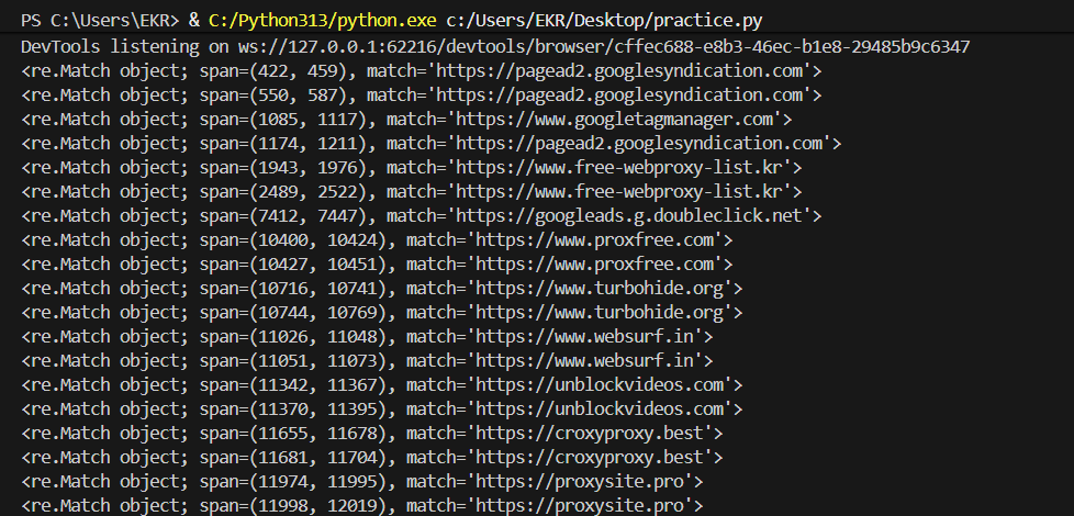5. 웹 프록시 목록 사이트에서 HTTPS URL들을 정규표현식으로 추출
