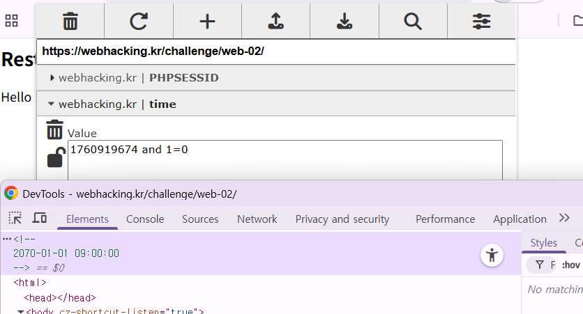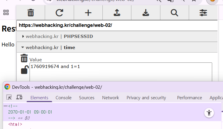 EditThisCookie๋ฅผ ์ด์ฉํด์ ์ฟ ํค๊ฐ์ ํ์ธํด๋ณธ ๊ฒฐ๊ณผ time์ด๋ผ๋ ์ฟ ํค์ ๊ฐ์ด ์์ฒ๋ผ ๋์ด ์๋ค.