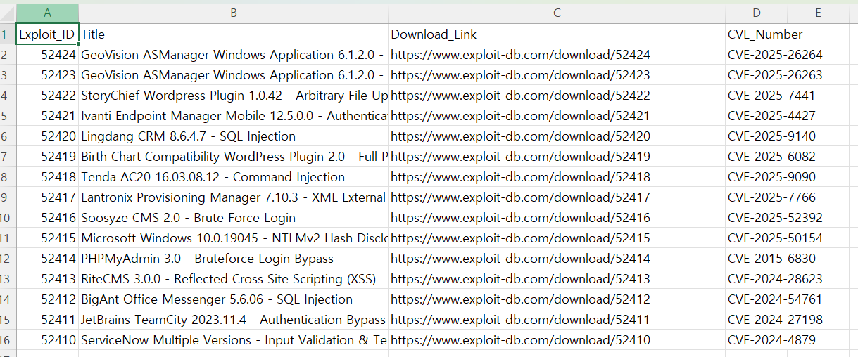 with open('exploit_db_vulnerabilities.csv', mode='w', newline='', encoding='utf-8') as csvfile: