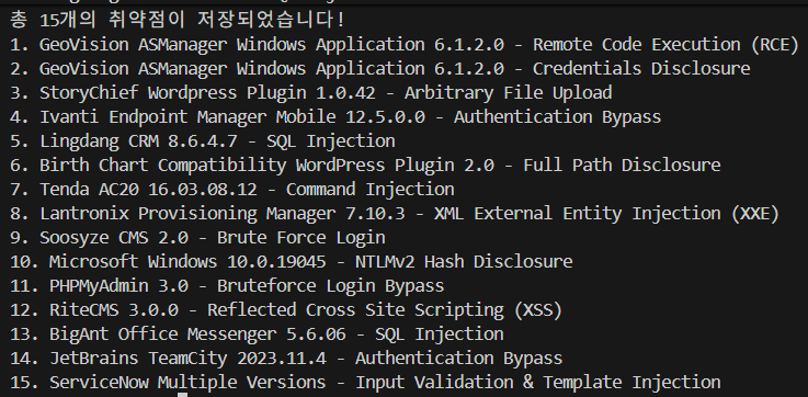 print(f"\n총 {len(vulnerabilities)}개의 취약점이 저장되었습니다!")