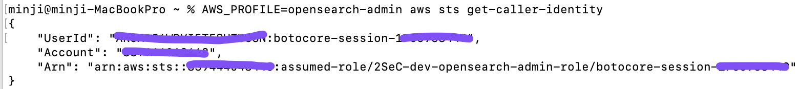 - 2SeC-dev-opensearch-admin-role로 정상 assume